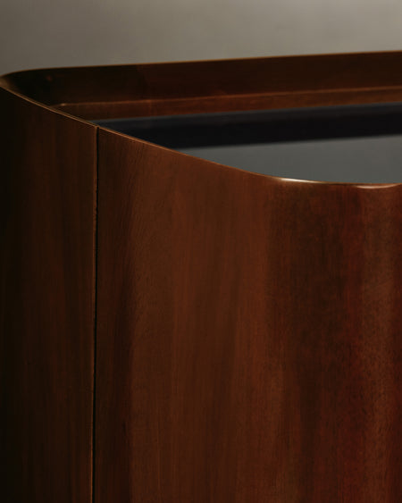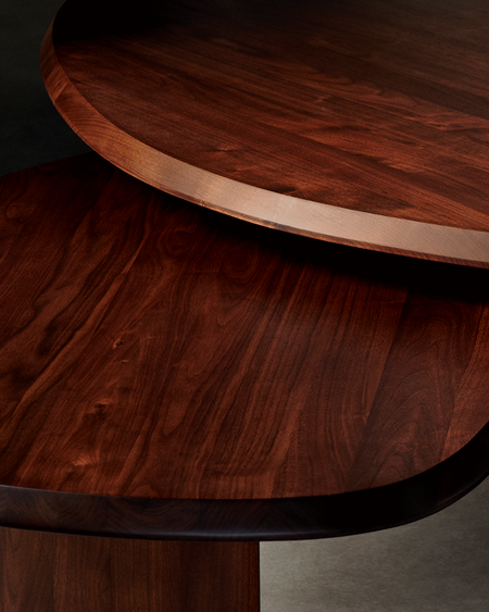 Walnut is a fine hardwood distinguished by its deep hue and smooth grain. Master artisans apply our Natural finish in several layers, enhancing the material's depth and tonal nuances. Over the years, it develops a patina that makes each piece unique.