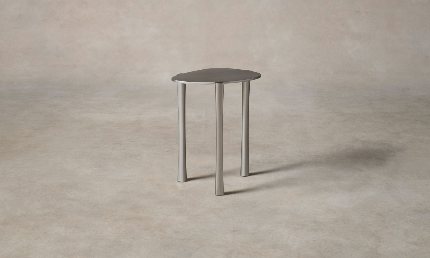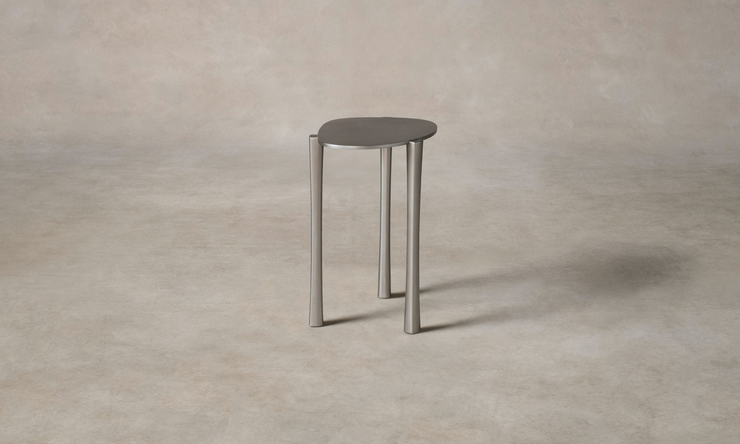 The Aurora Drink Table expresses strength through disciplined proportion and material execution. It is crafted from burnished steel with a rounded tabletop and slender legs, creating contrast between lightness and substance.