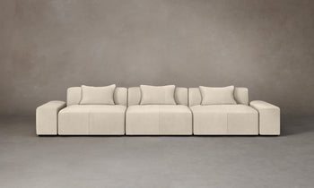 The Breuer Modular Sofa draws inspiration from the bold and graphic shapes of brutalist design. Tightly upholstered for a sleek look, it has a low-lying seat accompanied by plush throw pillows. Handcrafted in North Carolina.