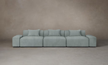 The Breuer Modular Sofa draws inspiration from the bold and graphic shapes of brutalist design. Tightly upholstered for a sleek look, it has a low-lying seat accompanied by plush throw pillows. Handcrafted in North Carolina.