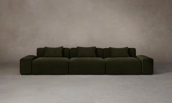 The Breuer Modular Sofa draws inspiration from the bold and graphic shapes of brutalist design. Tightly upholstered for a sleek look, it has a low-lying seat accompanied by plush throw pillows. Handcrafted in North Carolina.