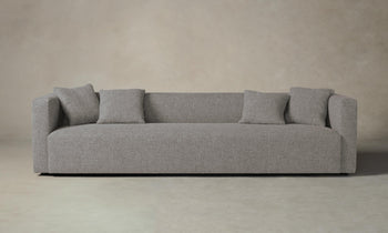 The Breuer Sofa draws inspiration from the bold and graphic shapes of brutalist design. Tightly upholstered for a sleek look, it has a low-lying seat accompanied by plush throw pillows. Handcrafted in North Carolina.
