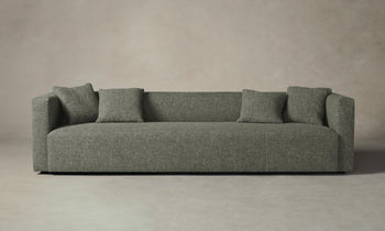 The Breuer Sofa draws inspiration from the bold and graphic shapes of brutalist design. Tightly upholstered for a sleek look, it has a low-lying seat accompanied by plush throw pillows. Handcrafted in North Carolina.