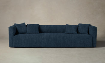 The Breuer Sofa draws inspiration from the bold and graphic shapes of brutalist design. Tightly upholstered for a sleek look, it has a low-lying seat accompanied by plush throw pillows. Handcrafted in North Carolina.