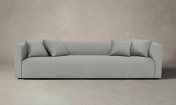 The Breuer Sofa draws inspiration from the bold and graphic shapes of brutalist design. Tightly upholstered for a sleek look, it has a low-lying seat accompanied by plush throw pillows. Handcrafted in North Carolina.