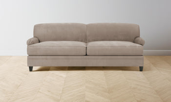 Neatly tailored and detailed with fan-pleated arms, the Carmine Sofa casts an air of elegance upon your space. It sits on tapered wood legs that round out the design’s polished appeal. Handcrafted in North Carolina.