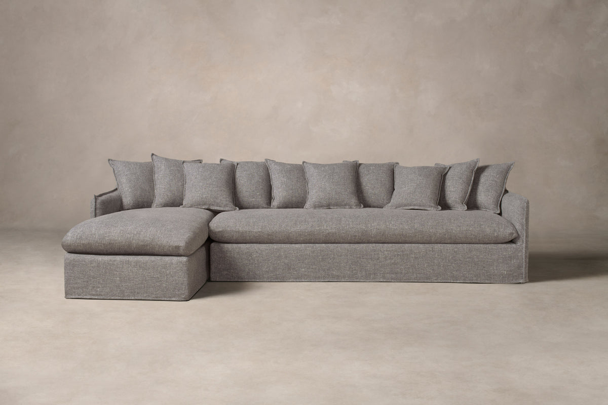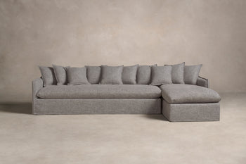 The Dune Sectional is a vision of effortlessness and ease. It boasts a deep seat, plush cushioning, and relaxed slipcover with hand-sewn flange seams for an elegant finish. Handcrafted in North Carolina.