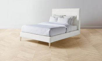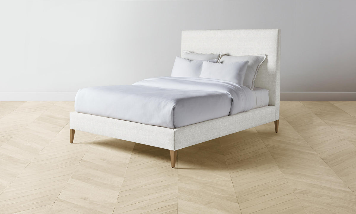 With its clean lines and neat tailoring, the Essex Bed is timeless in the truest sense. It has a fully upholstered frame with mitered corners and rests upon elegantly tapered legs. Handcrafted in North Carolina.