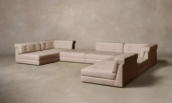 The Forma Modular Sectional has a relaxed appeal and limitless possibilities. Low-lying and gently reclined, each module is masterfully upholstered and detailed with bespoke tufts. Handcrafted in North Carolina.