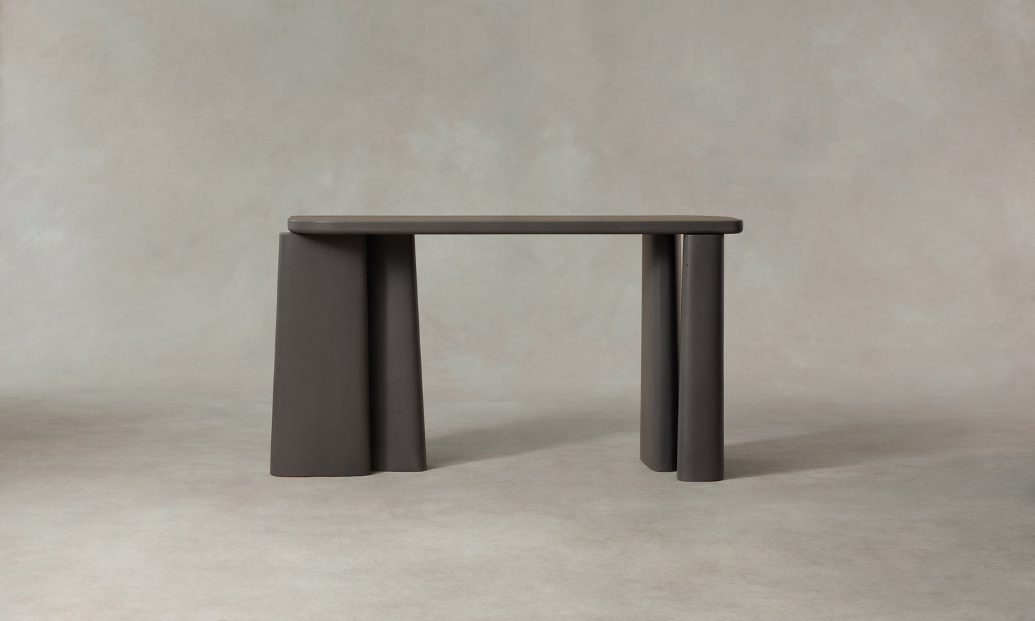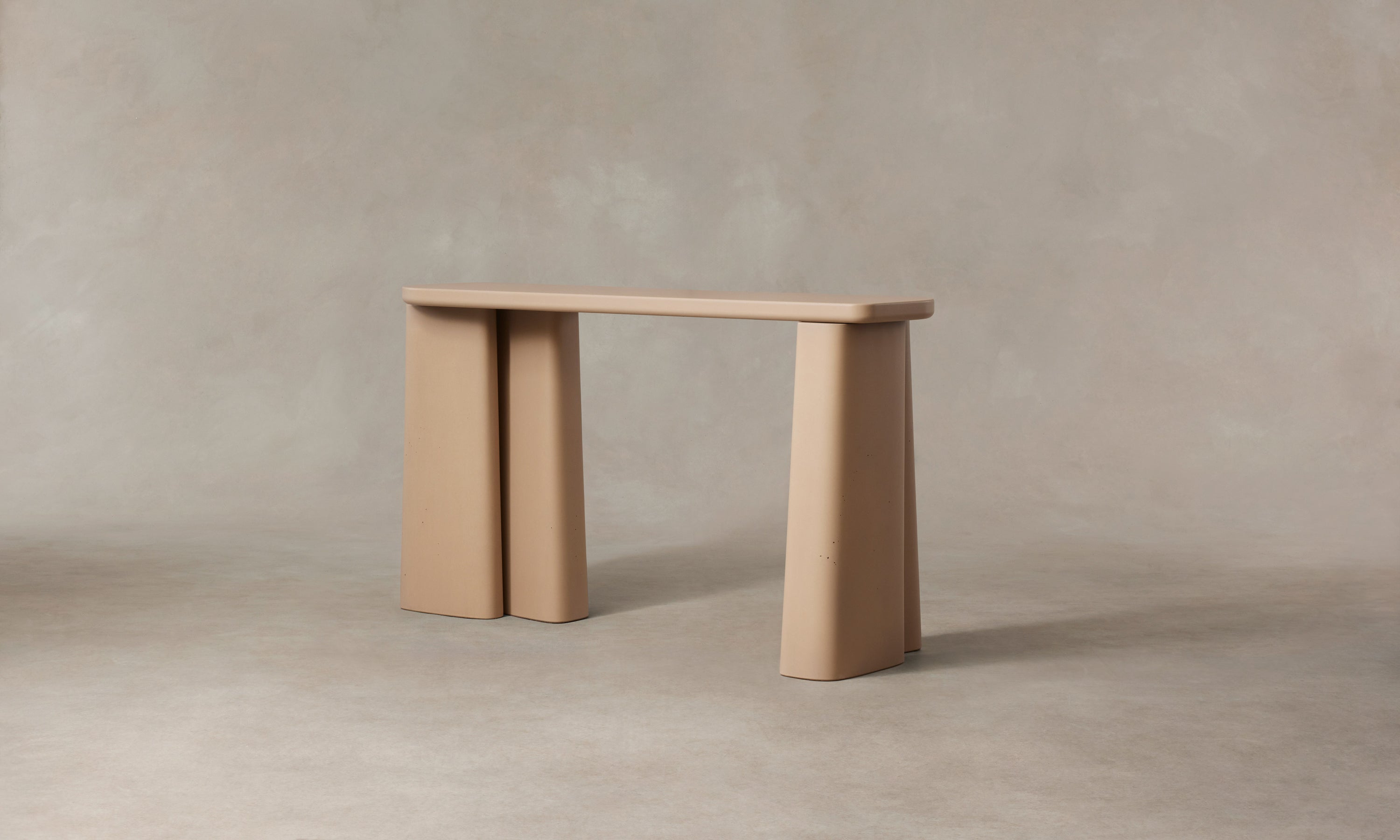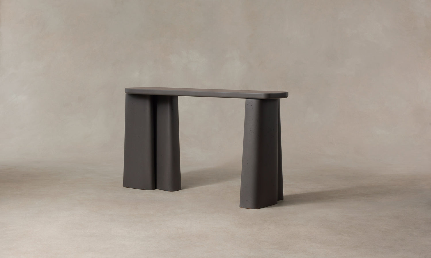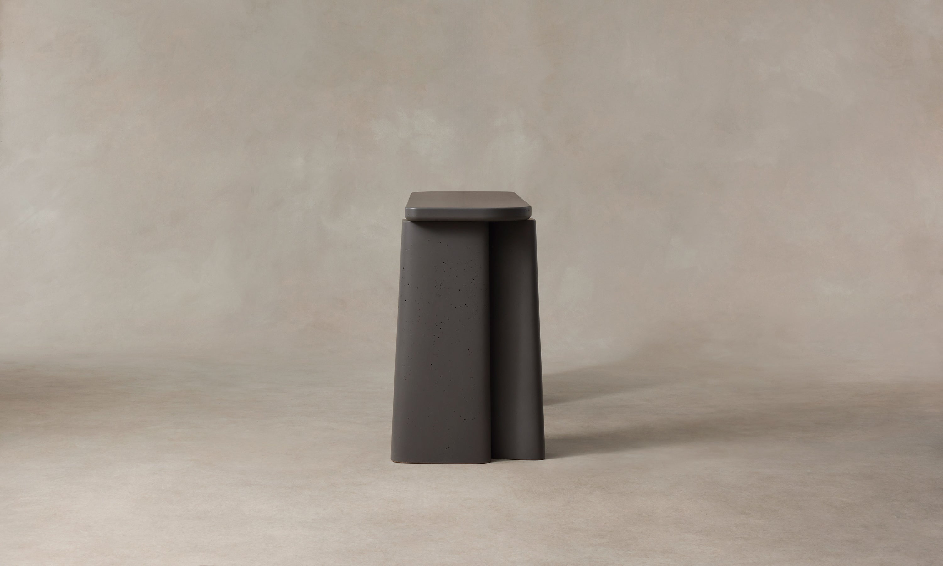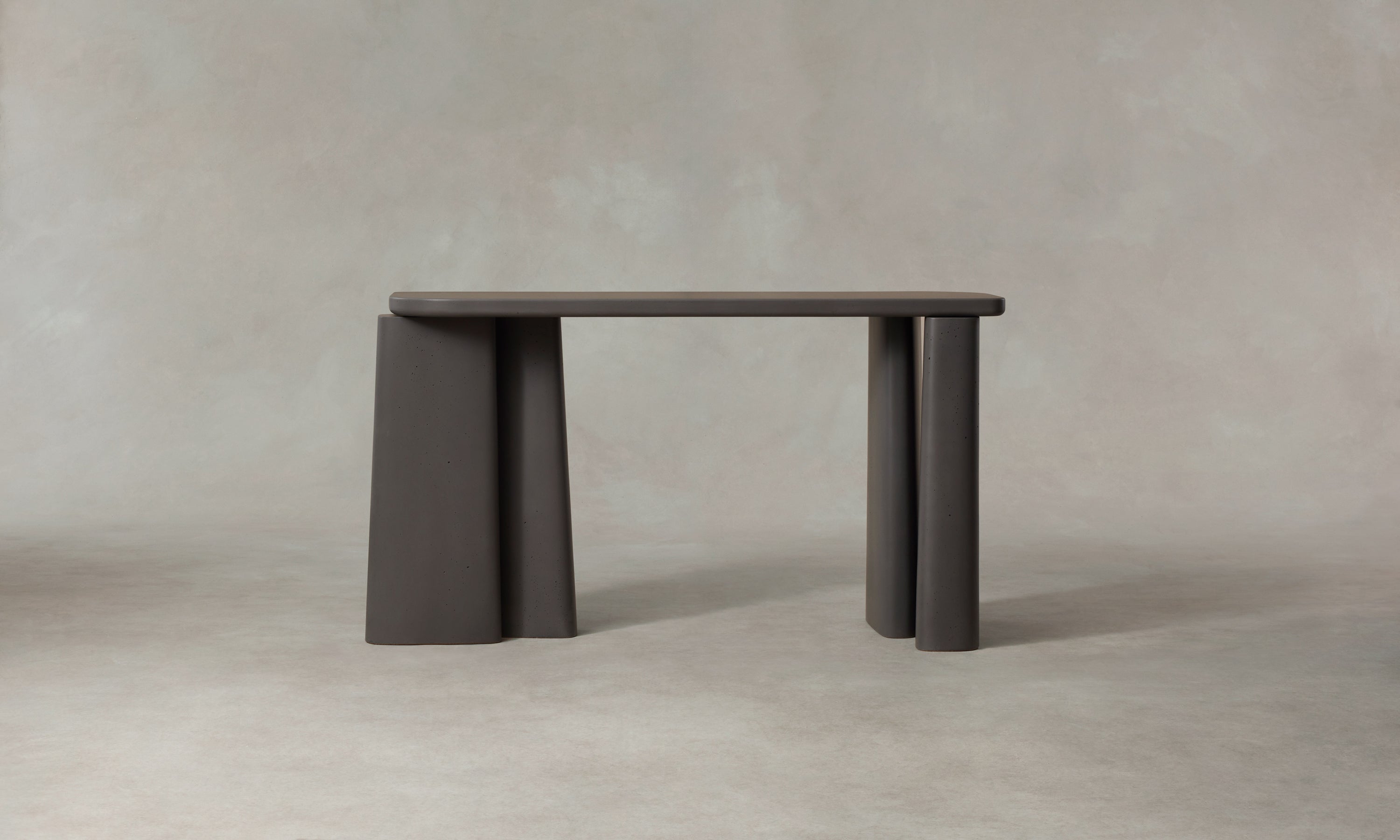 The Fragment Console Table's asymmetric silhouette is handcrafted in Rome from cement. Master artisans mix the material using sands from the local Tiber River, then hand-pour it into custom molds to achieve the design's distinctive shape.