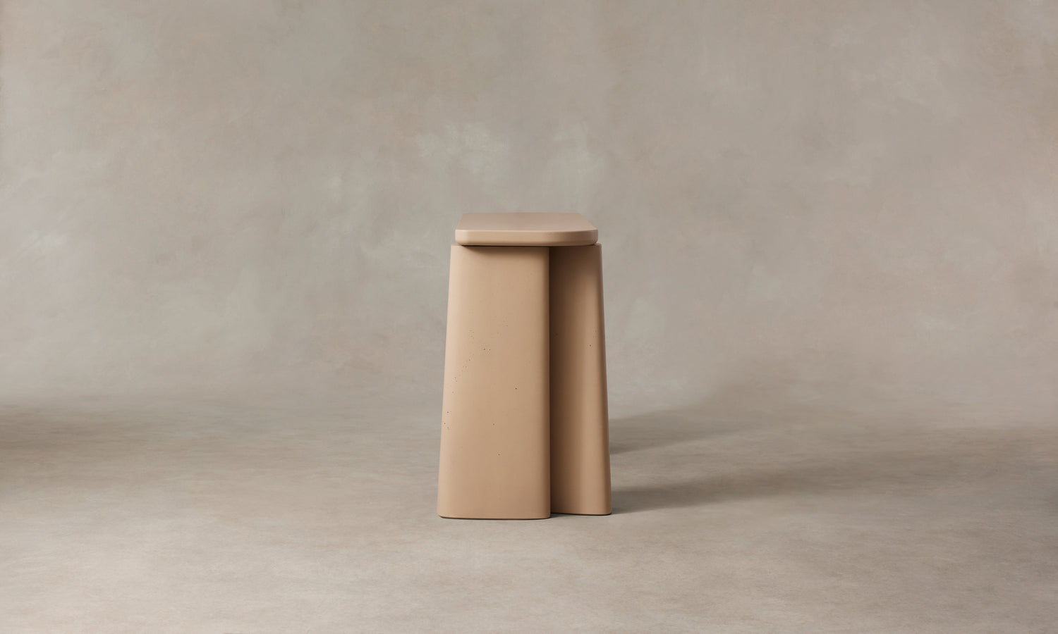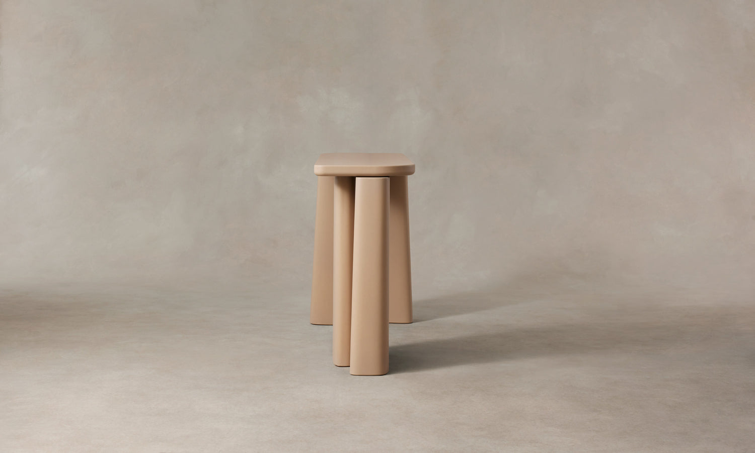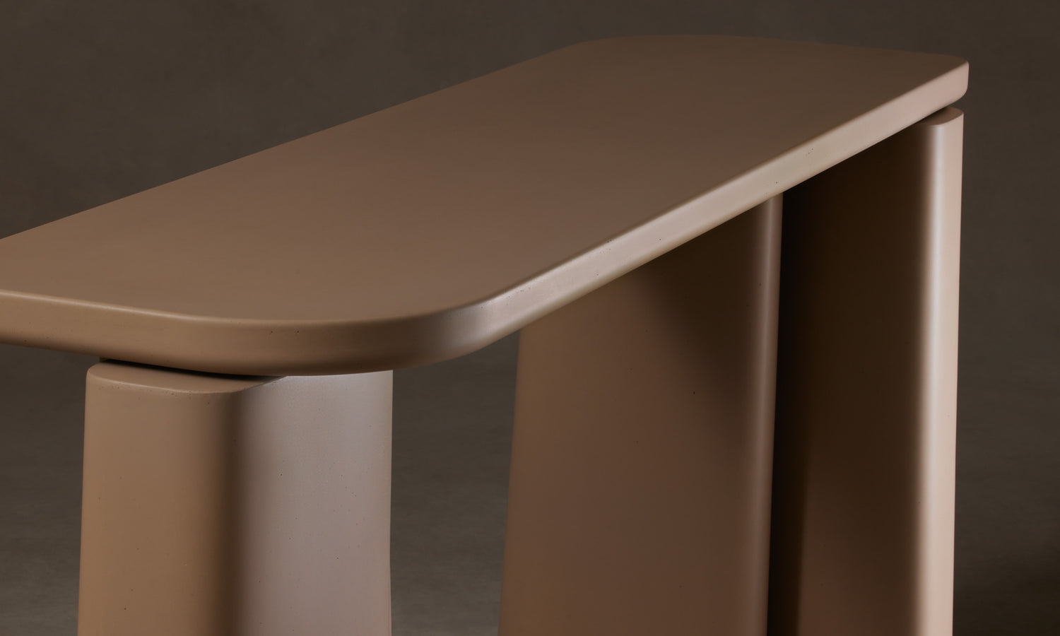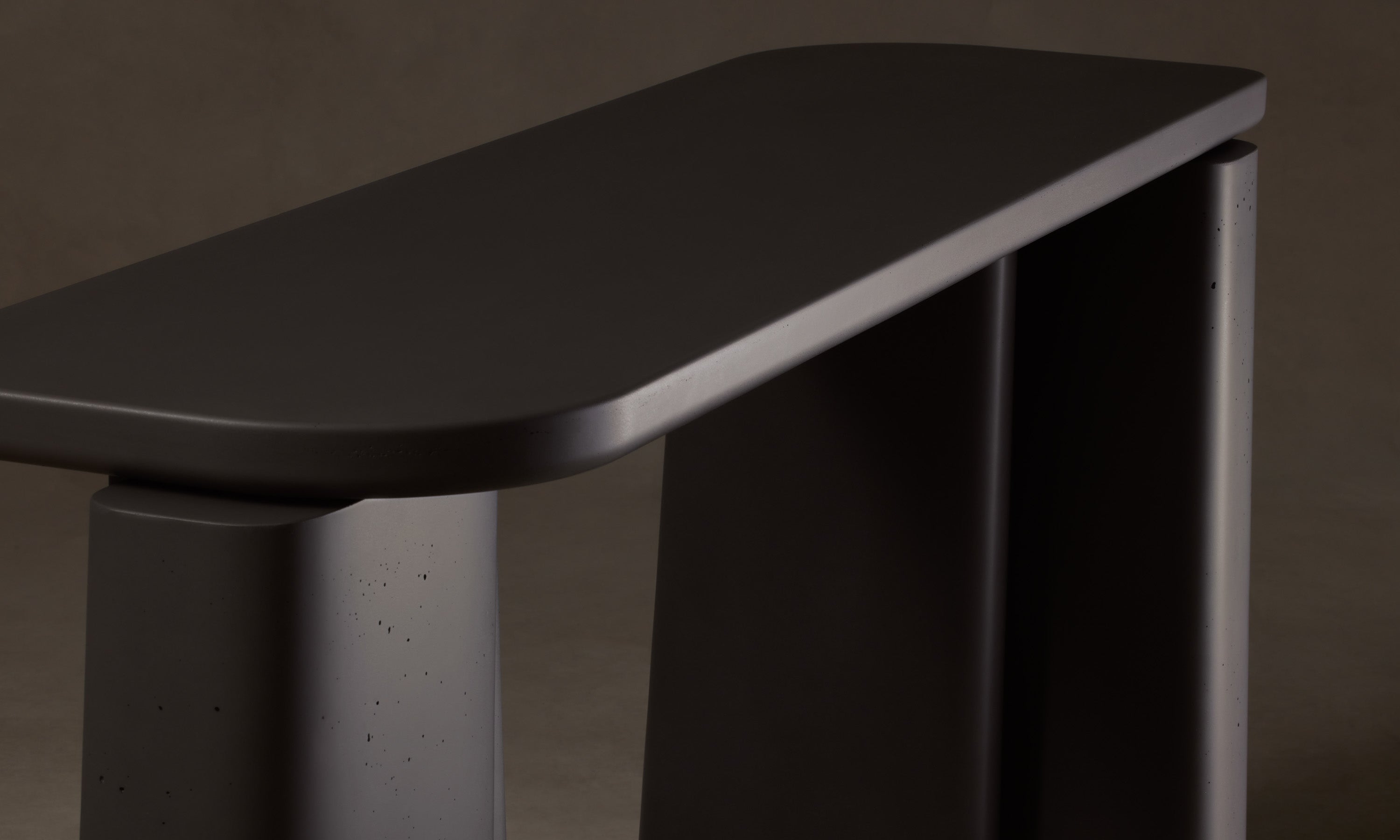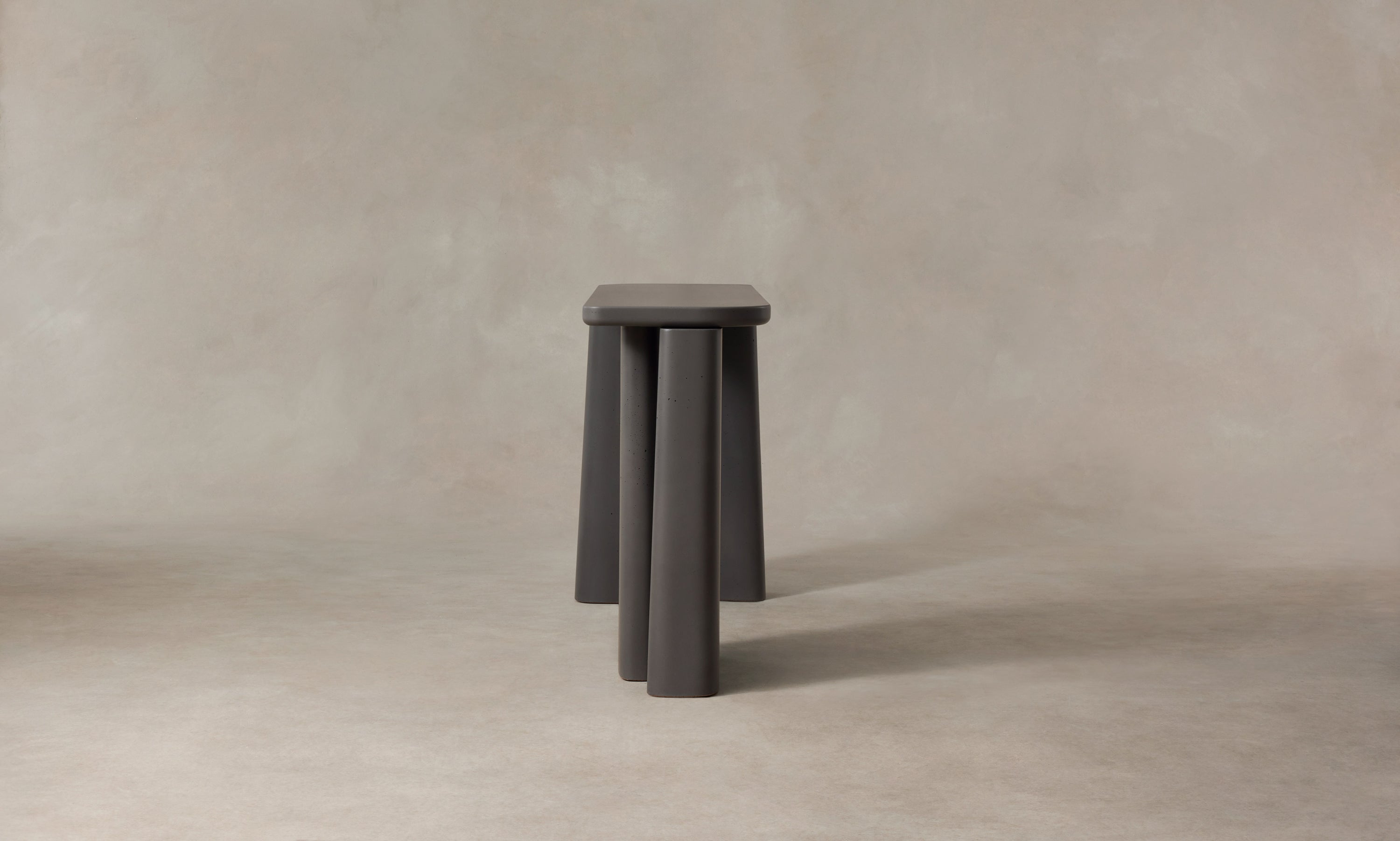 The Fragment Console Table's asymmetric silhouette is handcrafted in Rome from cement. Master artisans mix the material using sands from the local Tiber River, then hand-pour it into custom molds to achieve the design's distinctive shape.
