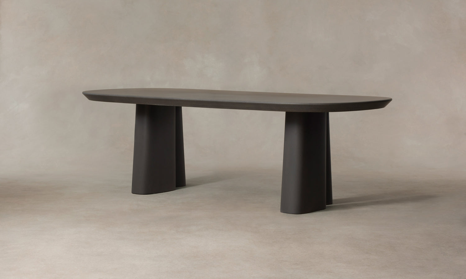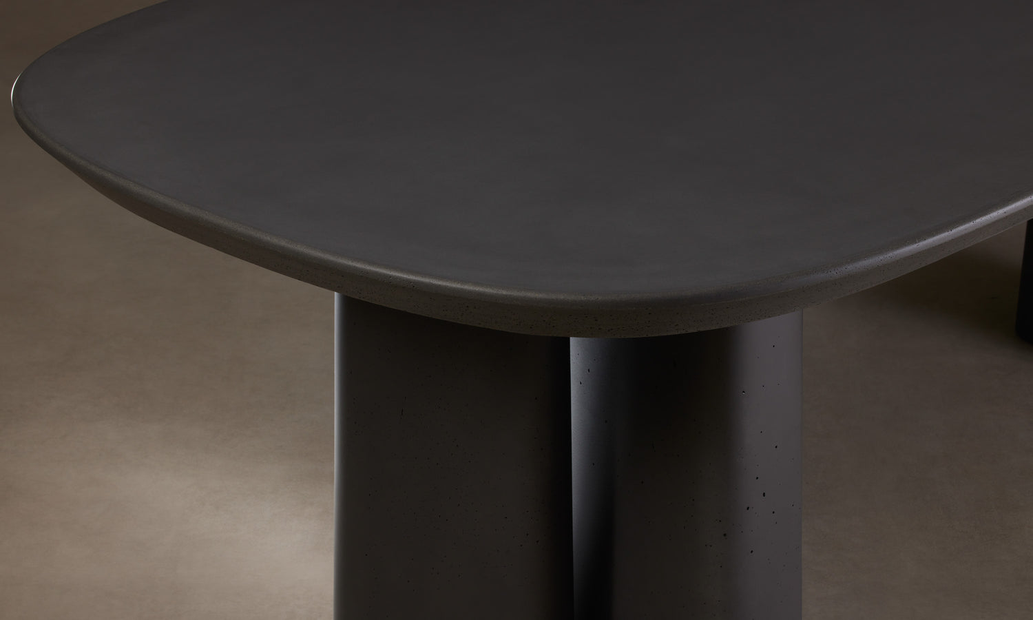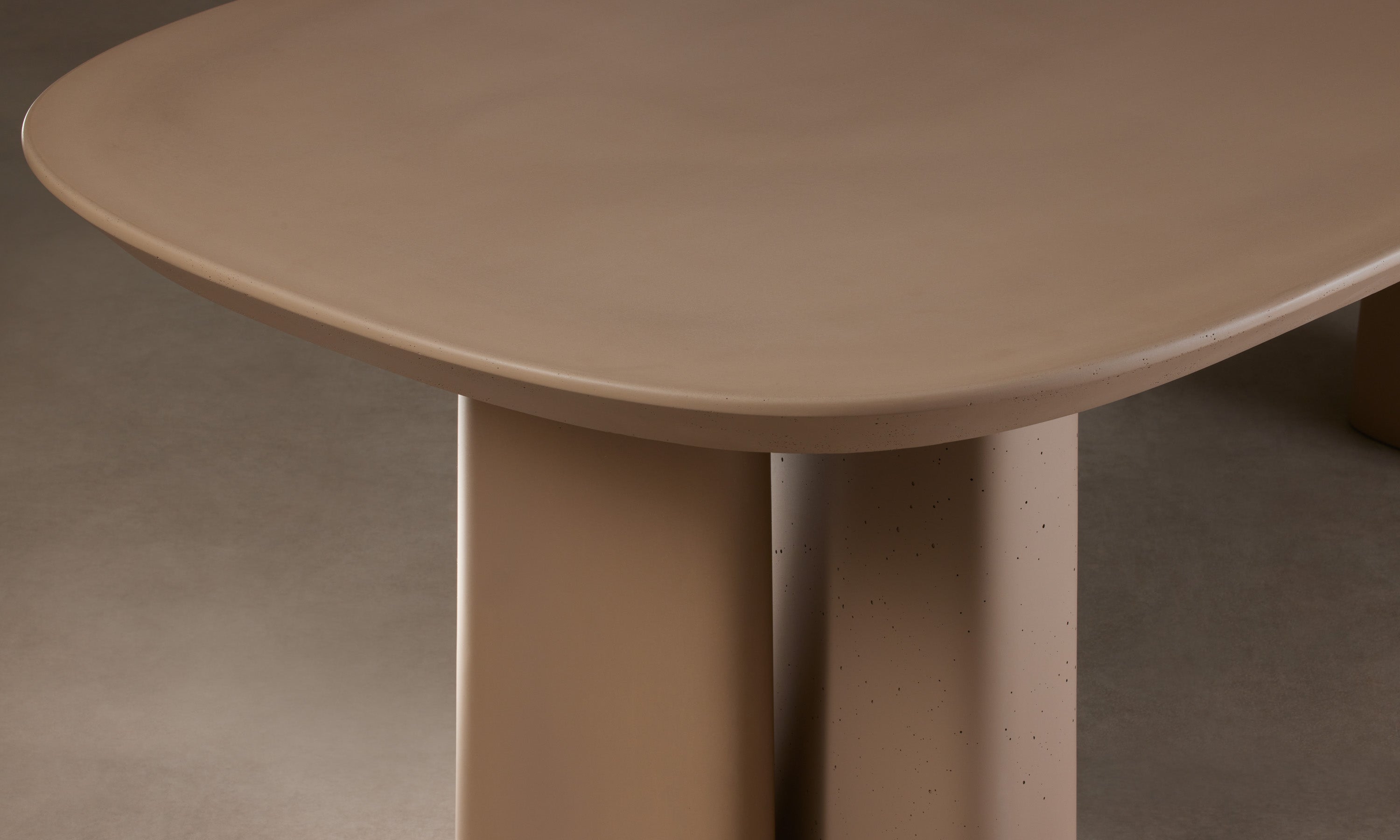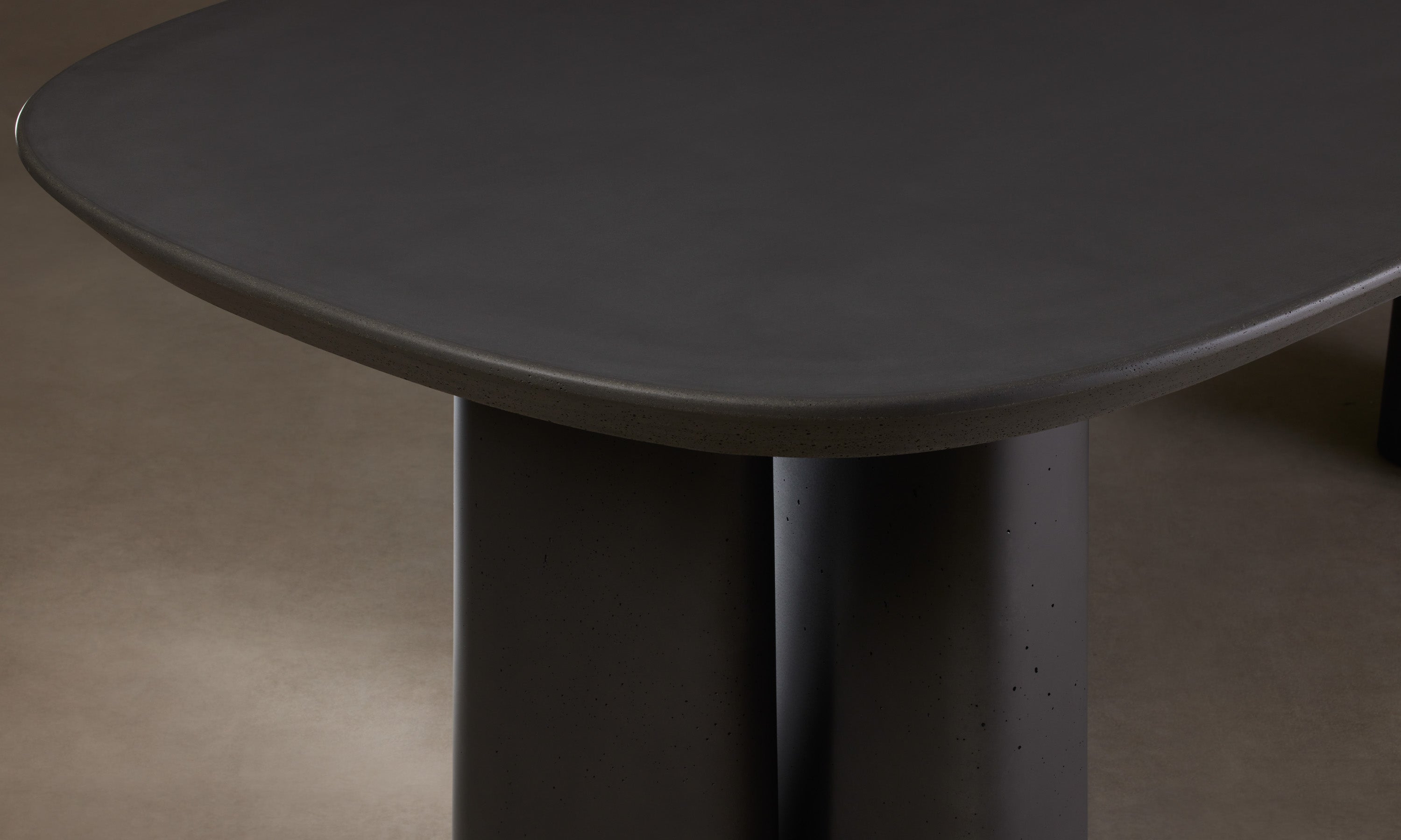 The Fragment Dining Table's asymmetric silhouette is handcrafted in Rome from cement. Master artisans mix the material using sands from the local Tiber River, then hand-pour it into custom molds to achieve the design's distinctive shape.