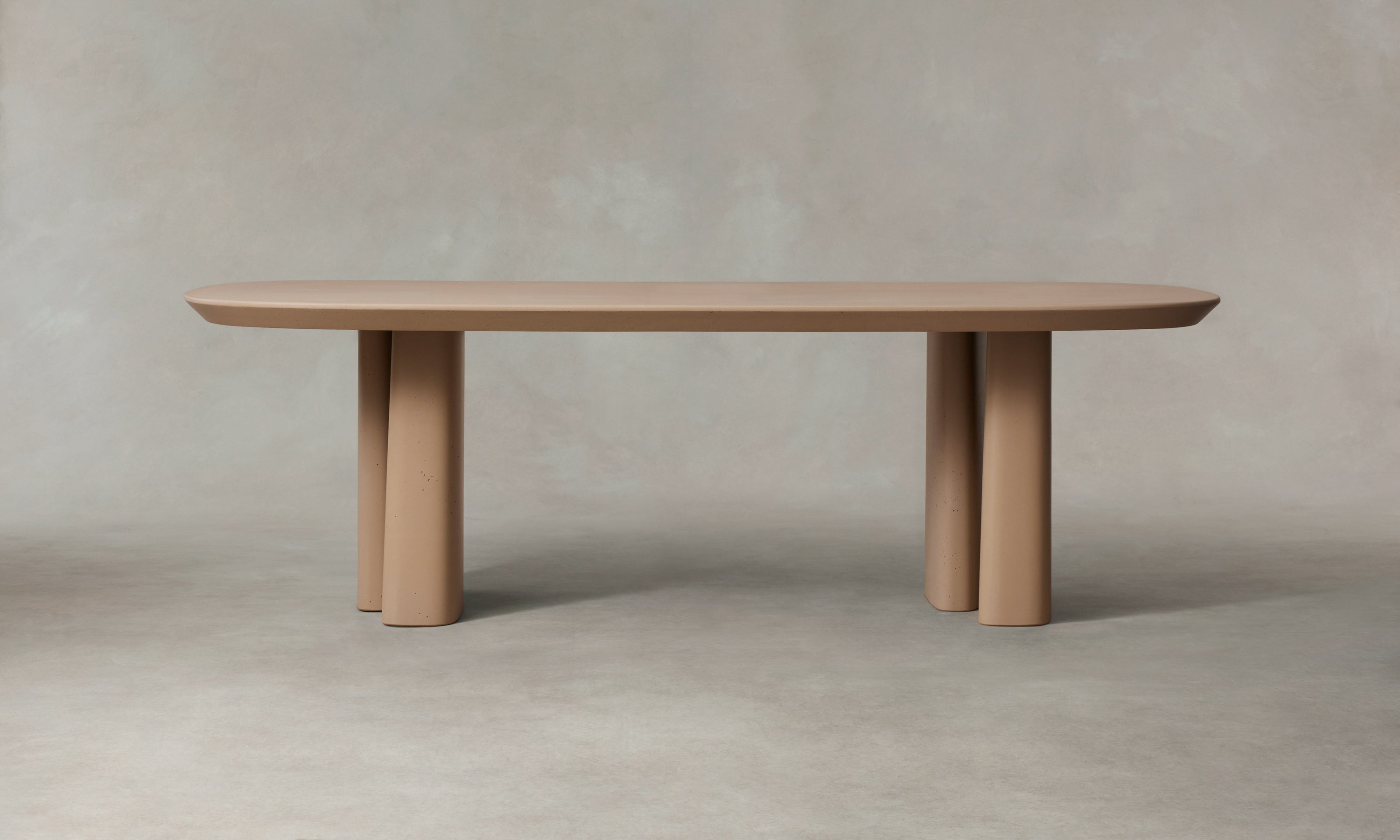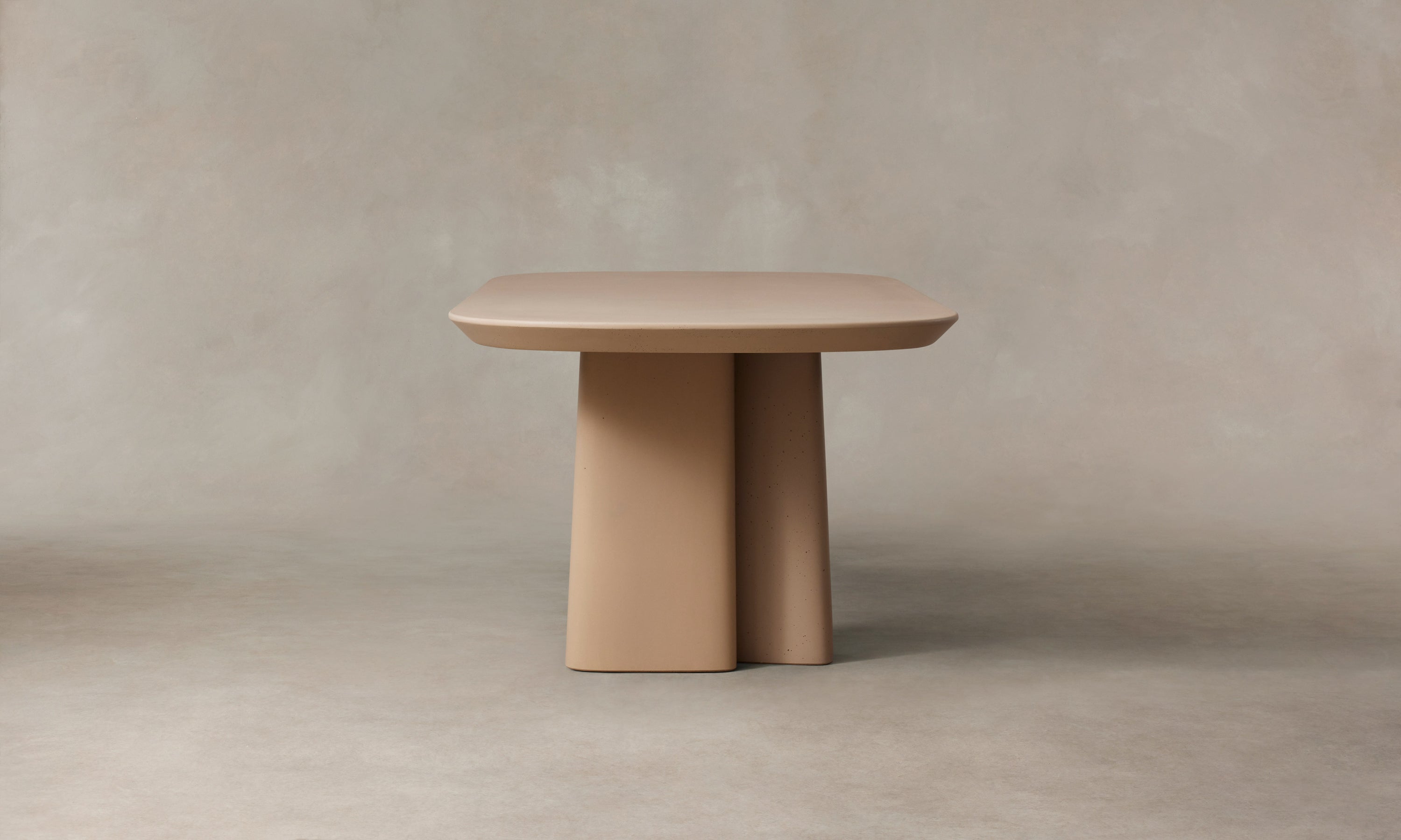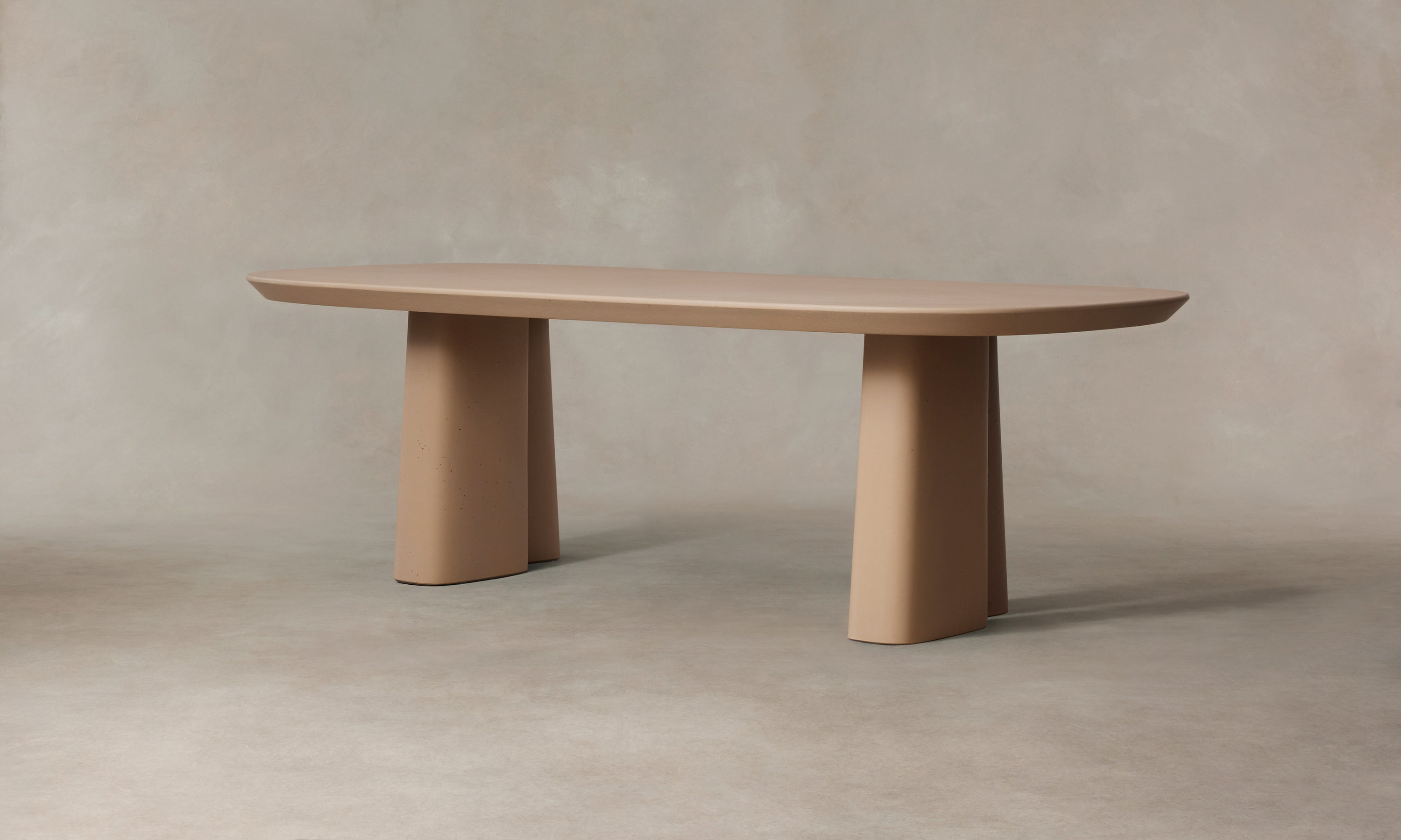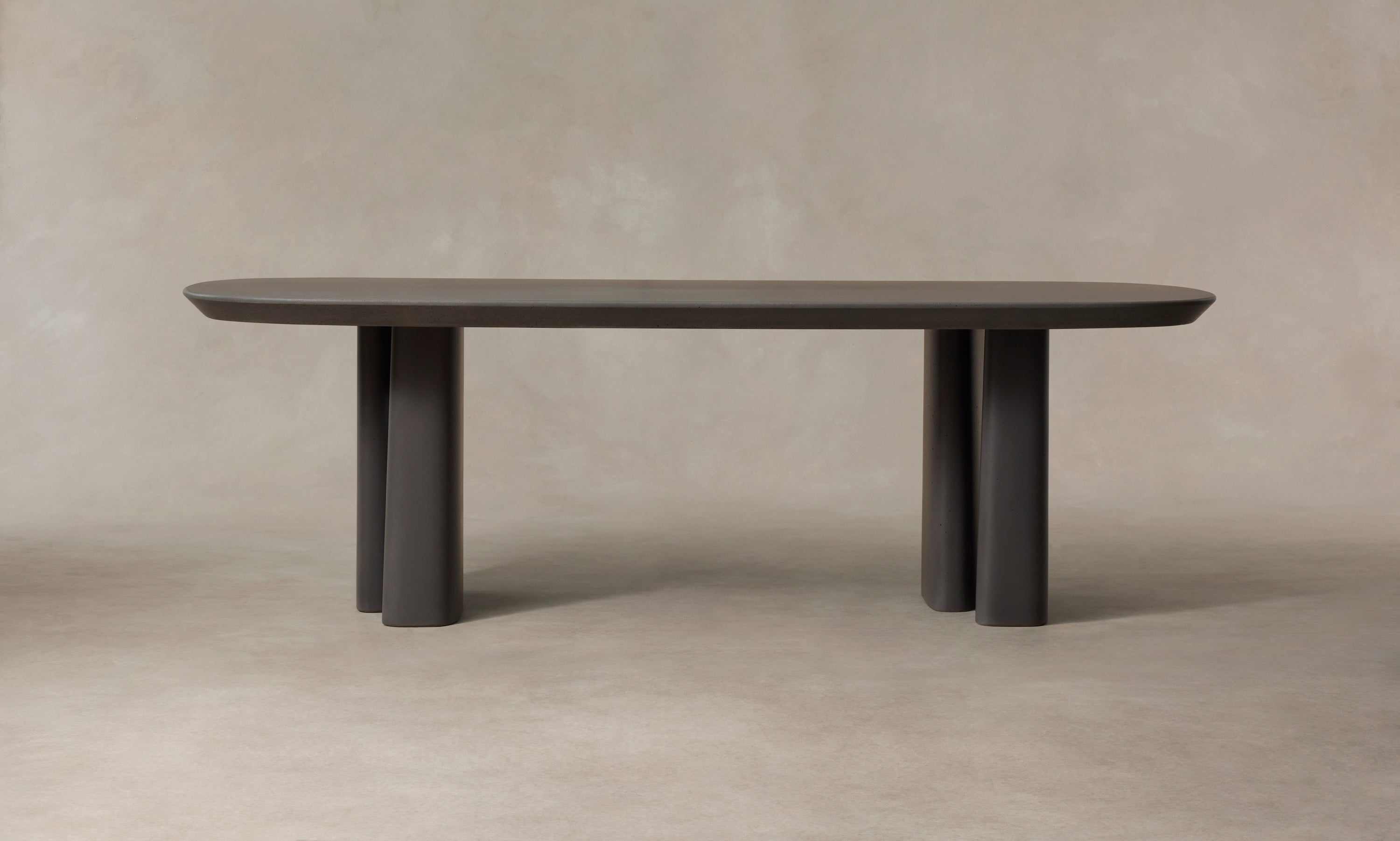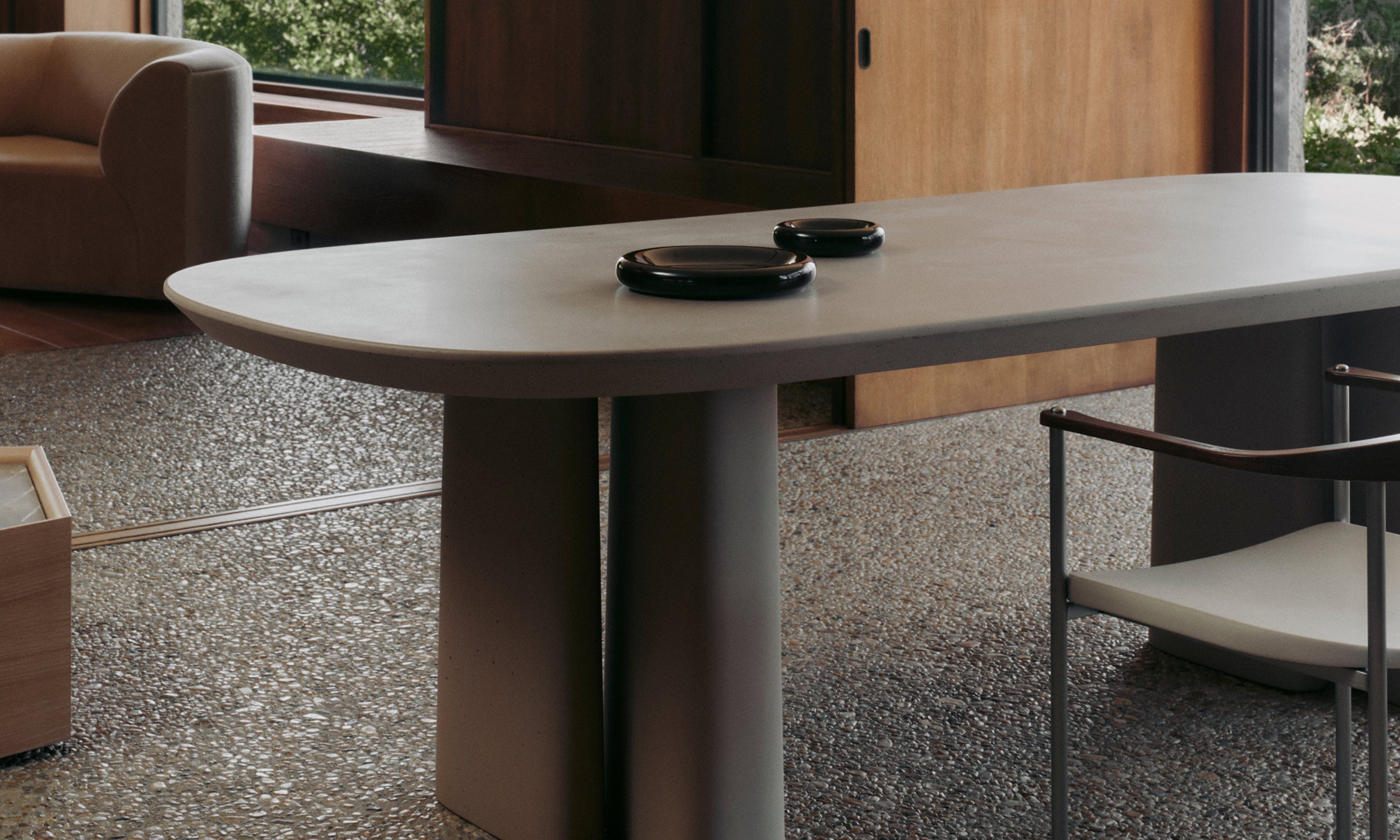 The Fragment Dining Table's asymmetric silhouette is handcrafted in Rome from cement. Master artisans mix the material using sands from the local Tiber River, then hand-pour it into custom molds to achieve the design's distinctive shape.