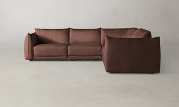The Jones Sectional's low-lying, modular design recalls silhouettes from the 1970s. It has voluminous cushions and plush arms complete with flange seams for a tailored finish. Handcrafted in North Carolina.