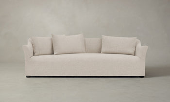 The Lenox Sofa is distinguished by its flared silhouette and sloped arms—together, they extend an invitation to relax. The frame is tightly upholstered and set upon recessed legs. Handcrafted in North Carolina.