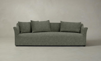 The Lenox Sofa is distinguished by its flared silhouette and sloped arms—together, they extend an invitation to relax. The frame is tightly upholstered and set upon recessed legs. Handcrafted in North Carolina.