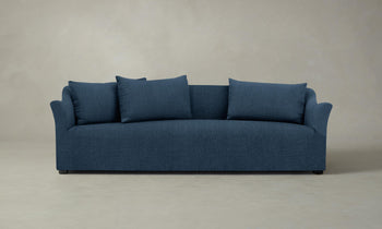 The Lenox Sofa is distinguished by its flared silhouette and sloped arms—together, they extend an invitation to relax. The frame is tightly upholstered and set upon recessed legs. Handcrafted in North Carolina.