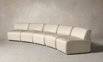 The Miles Modular Sectional is a bold articulation of modernist design influences. Resting upon a polished chrome frame, its voluminous seat cushions come together into a beautiful curved silhouette. Handcrafted in North Carolina.
