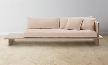 From the woodwork to the tailoring, every element of the Muir Sofa is a display of exquisite artisanship. Its angular frame extends beyond the seat cushion, allowing space for decorative objects or necessities. Handcrafted in North Carolina.