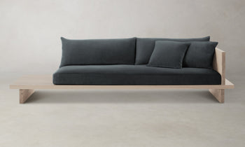 From the woodwork to the tailoring, every element of the Muir Sofa is a display of exquisite artisanship. Its angular frame extends beyond the seat cushion, allowing space for decorative objects or necessities. Handcrafted in North Carolina.