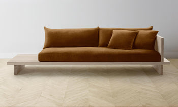 From the woodwork to the tailoring, every element of the Muir Sofa is a display of exquisite artisanship. Its angular frame extends beyond the seat cushion, allowing space for decorative objects or necessities. Handcrafted in North Carolina.