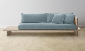 From the woodwork to the tailoring, every element of the Muir Sofa is a display of exquisite artisanship. Its angular frame extends beyond the seat cushion, allowing space for decorative objects or necessities. Handcrafted in North Carolina.