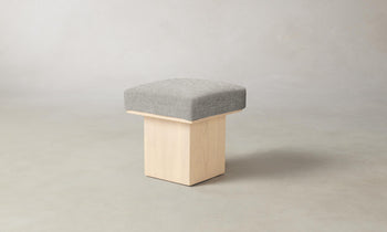 The Mulberry Ottoman's geometric silhouette exudes sophistication. It has a masterfully upholstered seat cushion that sits atop a striking ash pedestal base. Handcrafted in North Carolina.