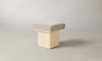 The Mulberry Ottoman's geometric silhouette exudes sophistication. It has a masterfully upholstered seat cushion that sits atop a striking ash pedestal base. Handcrafted in North Carolina.