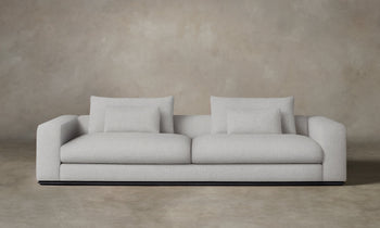 Marrying Italian modernist form with enveloping comfort, the Nicola Sofa invites total relaxation. It has a low back with plush down cushions supported by bolsters and rests atop a sleek plinth base. Handcrafted in North Carolina.