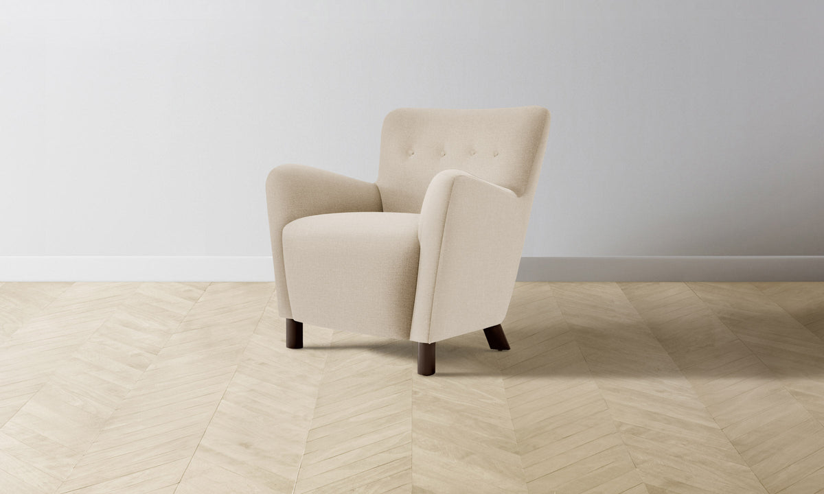 The Perry Chair carries mid-century Scandinavian design influences into the home with its sinuous silhouette and button-tufted details. Tight upholstery and blind seams lend the design a smooth finish. Handcrafted in North Carolina.