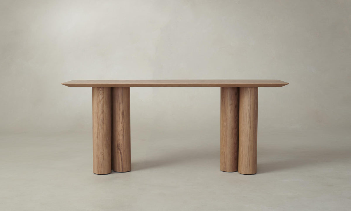 In the Reade Console Table, strong and sculptural forms collide. The design features a rectangular tabletop and columnar legs, each shaped from solid ash by Amish artisans. Handcrafted in Ohio.
