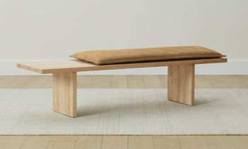 The Reyes Bench underscores the allure of honest materials. Its linear ash seat is detailed with brass insets that add touches of warmth, while the optional Nubuck Leather cushion offers a sumptuous layer of softness. Handcrafted in North Carolina.
