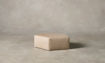 The Trivena Ottoman's striking geometric silhouette is crafted by master artisans in North Carolina. It has a strong presence on its own and creates a harmony of mixed materiality when paired with the coordinating coffee table.