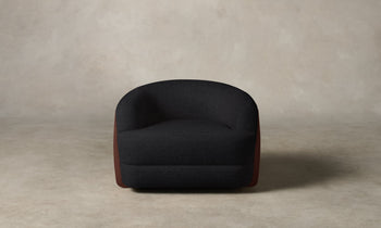 The Vera Swivel Chair pays homage to the soft and sensual lines of early Art Deco seating. It has smooth wraparound arms and a voluminous seat mounted on a swivel base. Handcrafted in North Carolina.