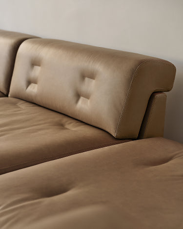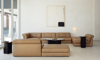 In the Forma Modular Sectional, low-lying modules converge into silhouettes that echo the relaxed elegance of 1970s design.