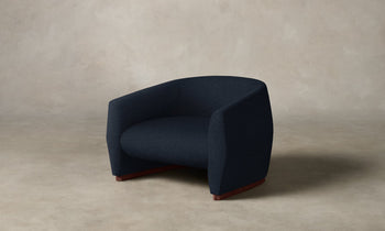 The Alpe Chair is a streamlined silhouette with convex wraparound arms that rest upon an elegant white oak or walnut base. The design is cloaked in masterful upholstery with sleek linear seams. Handcrafted in North Carolina.