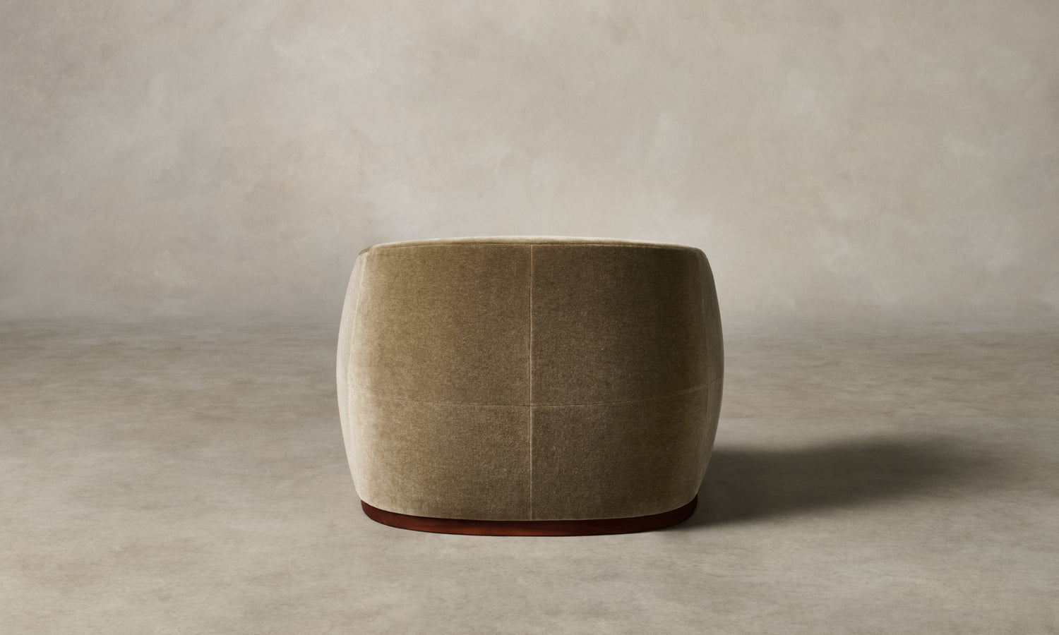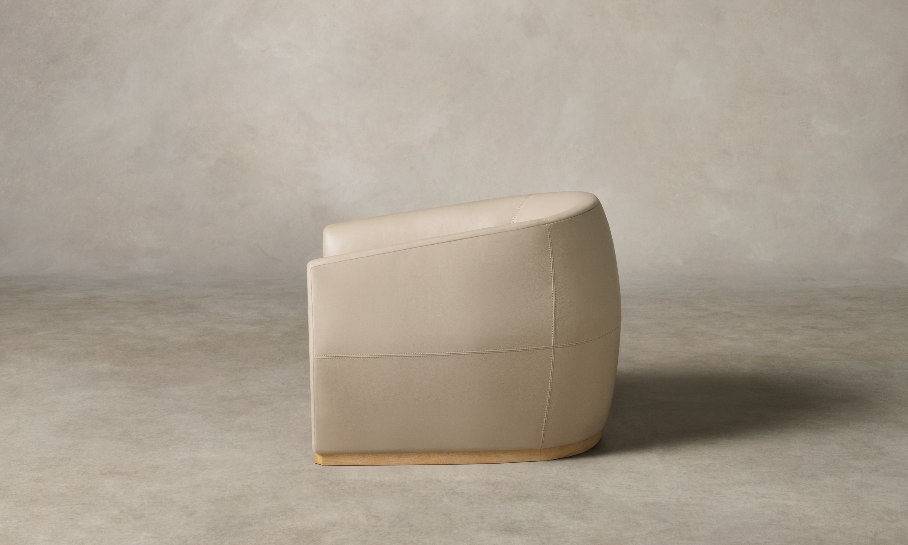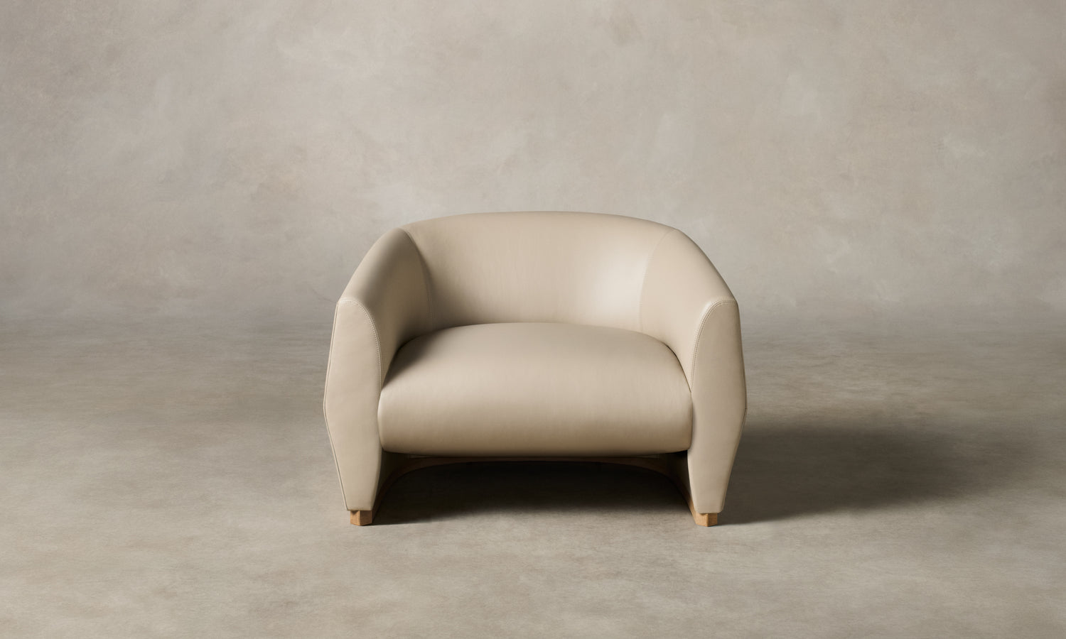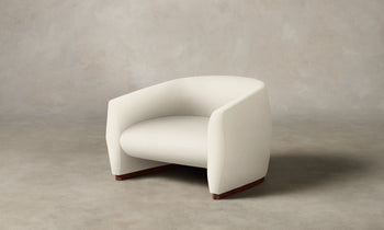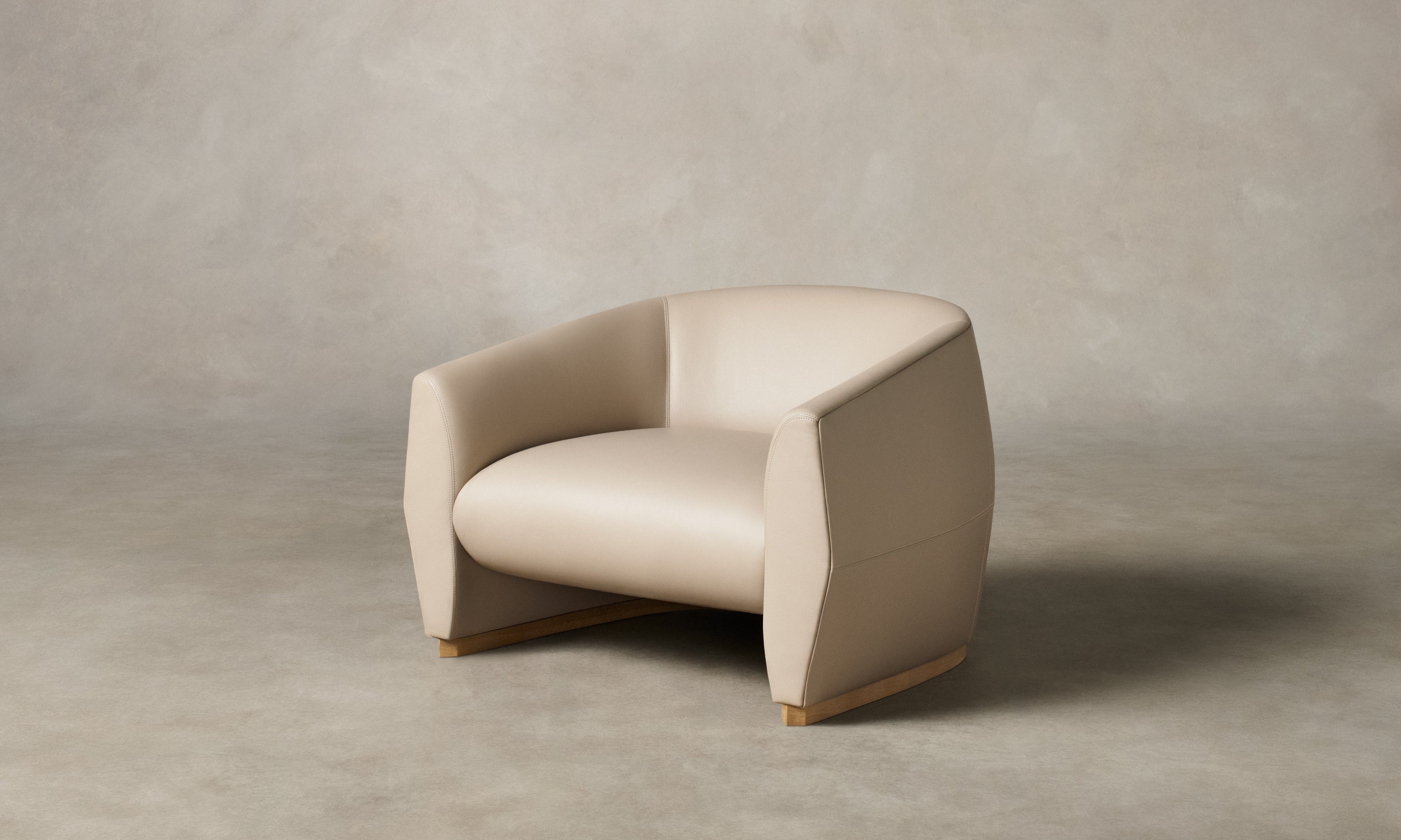 The Alpe Chair is a streamlined silhouette with convex wraparound arms that rest upon an elegant white oak or walnut base. The design is cloaked in masterful upholstery with sleek linear seams. Handcrafted in North Carolina.