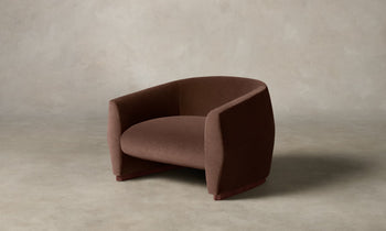 The Alpe Chair is a streamlined silhouette with convex wraparound arms that rest upon an elegant white oak or walnut base. The design is cloaked in masterful upholstery with sleek linear seams. Handcrafted in North Carolina.