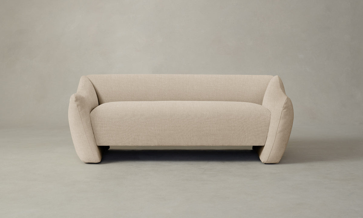 Informed by the curvaceous shapes of postmodernist design, the Bond Settee features a flared silhouette with all-around upholstery and cushioning for a comfortable sit. Handcrafted in North Carolina.