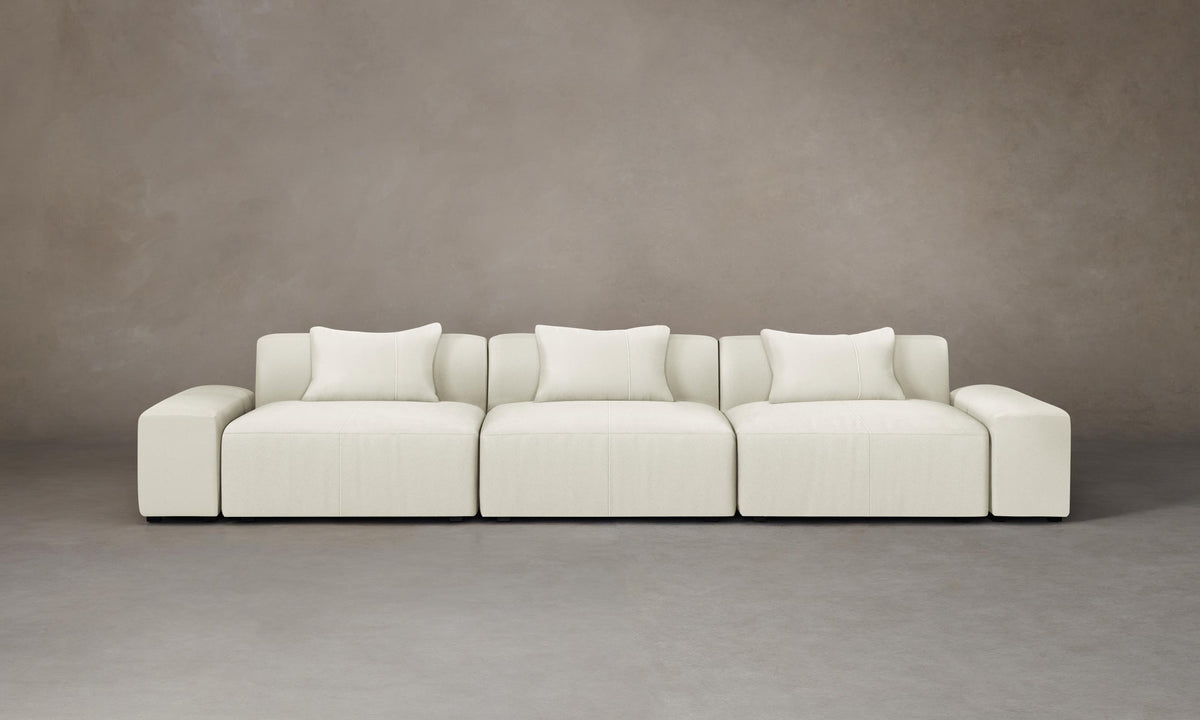 The Breuer Modular Sofa draws inspiration from the bold and graphic shapes of brutalist design. Tightly upholstered for a sleek look, it has a low-lying seat accompanied by plush throw pillows. Handcrafted in North Carolina.