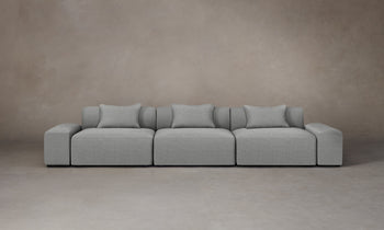 The Breuer Modular Sofa draws inspiration from the bold and graphic shapes of brutalist design. Tightly upholstered for a sleek look, it has a low-lying seat accompanied by plush throw pillows. Handcrafted in North Carolina.