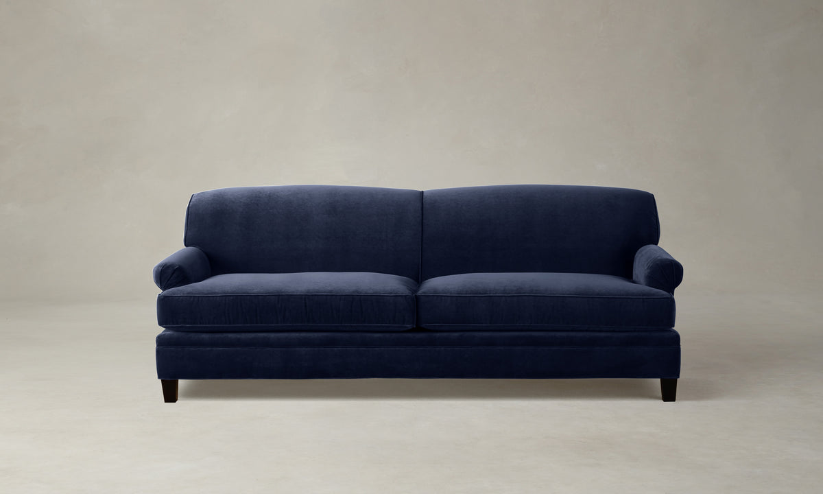Neatly tailored and detailed with fan-pleated arms, the Carmine Sofa casts an air of elegance upon your space. It sits on tapered wood legs that round out the design’s polished appeal. Handcrafted in North Carolina.