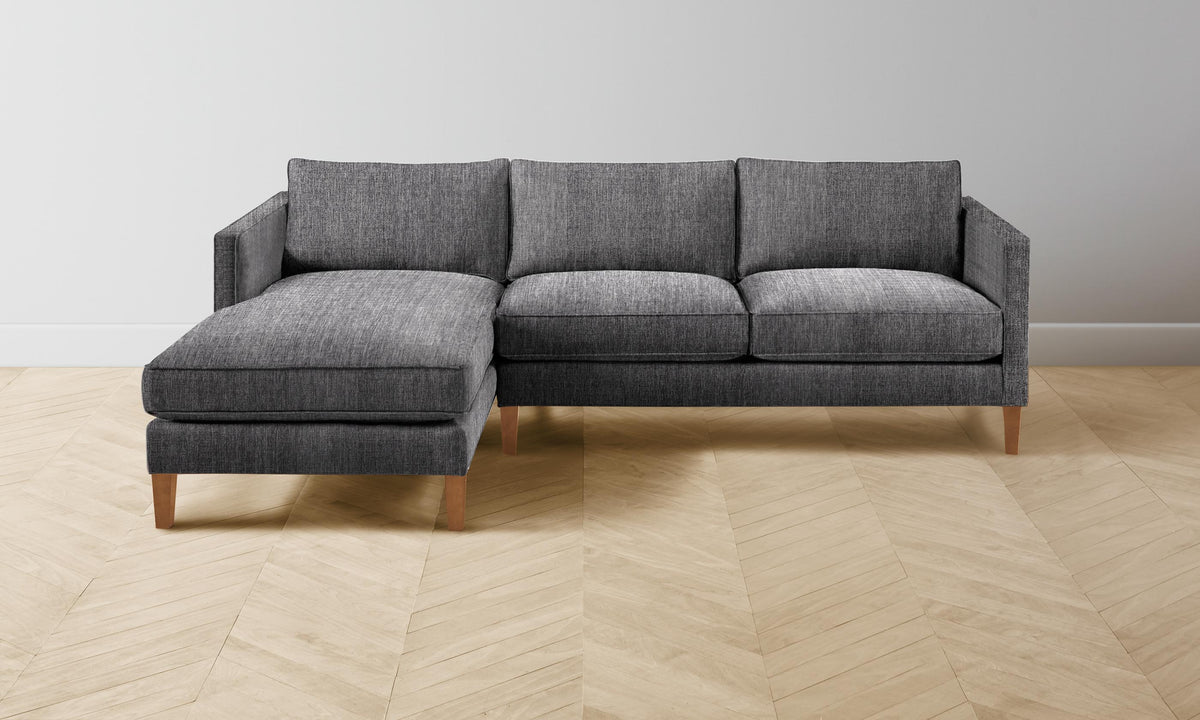 The Crosby Sectional is a testament to the charm of simplicity. With a slender profile that suits spaces small and large, the design is neatly upholstered with cord welts and sits atop tapered legs. Handcrafted in North Carolina.