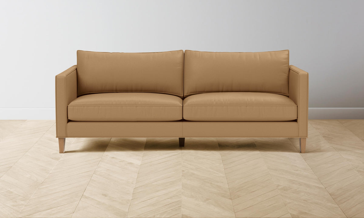 The Crosby Sofa is a testament to the charm of simplicity. With a slender profile that suits spaces small and large, the design is neatly upholstered with cord welts and sits atop tapered legs. Handcrafted in North Carolina.