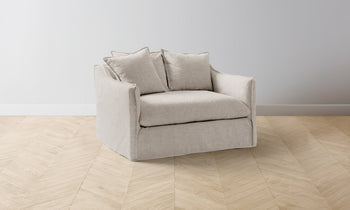 The Dune Chair-and-a-Half is a vision of effortlessness and ease. It boasts a deep seat, plush cushioning, and relaxed slipcover with hand-sewn flange seams for an elegant finish. Handcrafted in North Carolina.