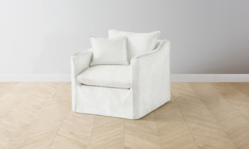 The Dune Swivel Chair is a vision of effortlessness and ease. It boasts a deep seat, plush cushioning, and relaxed slipcover with hand-sewn flange seams for an elegant finish. Handcrafted in North Carolina.