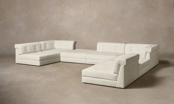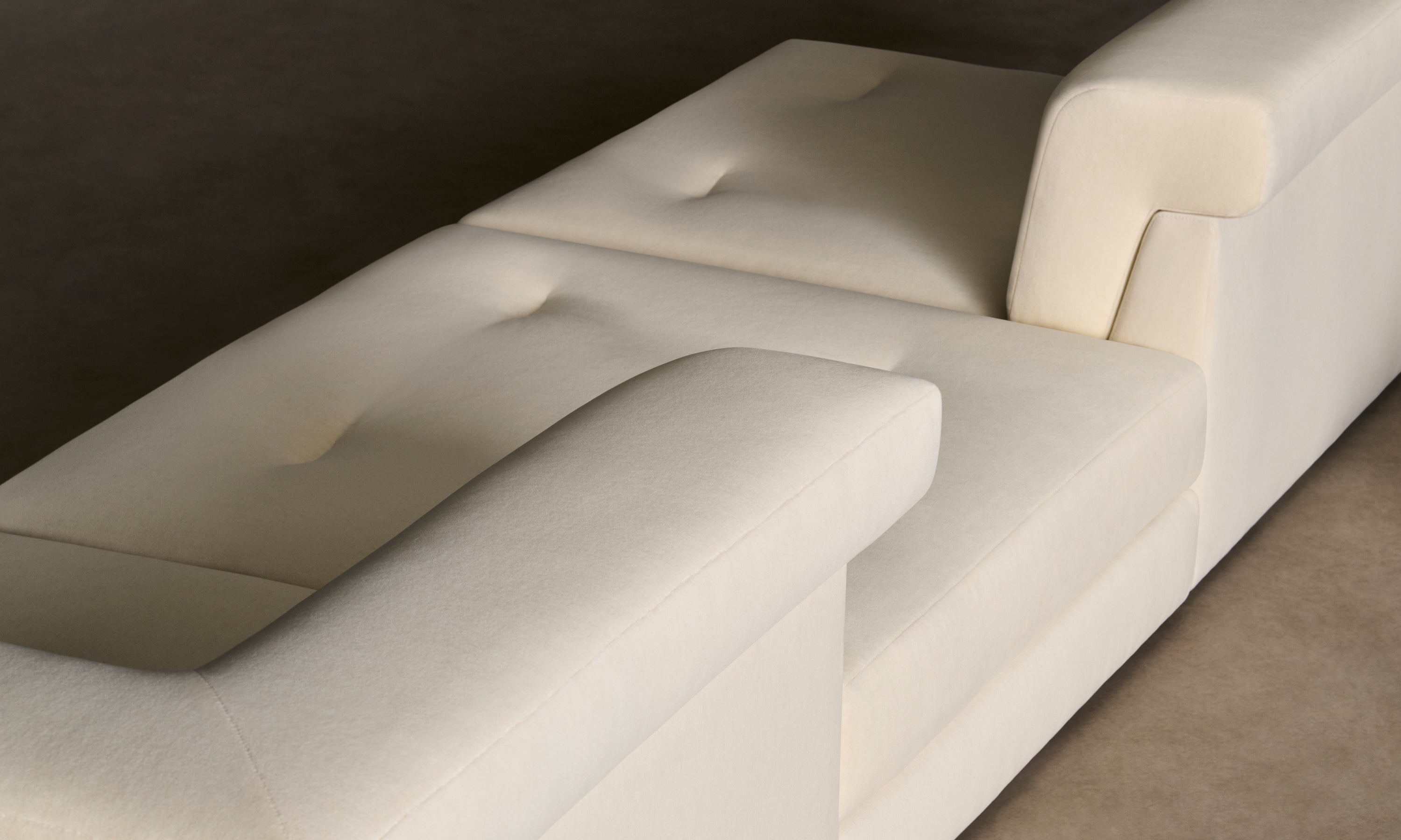 The Forma Modular Sectional has a relaxed appeal and limitless possibilities. Low-lying and gently reclined, each module is masterfully upholstered and detailed with bespoke tufts. Handcrafted in North Carolina.