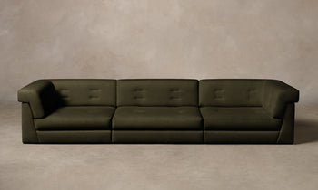The Forma Modular Sofa has a relaxed appeal and limitless possibilities. Low-lying and gently reclined, each module is masterfully upholstered and detailed with bespoke tufts. Handcrafted in North Carolina.