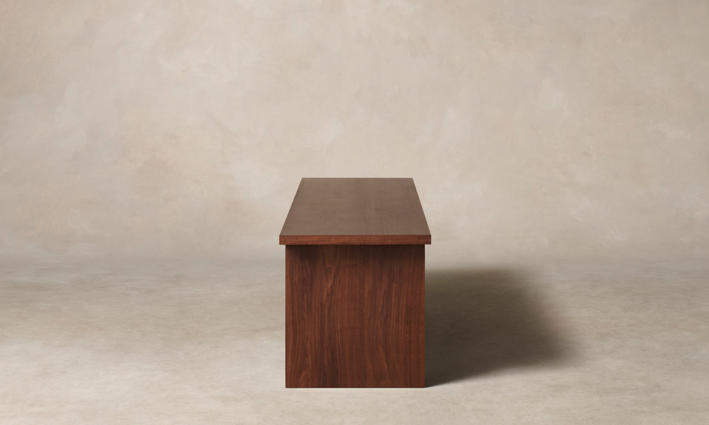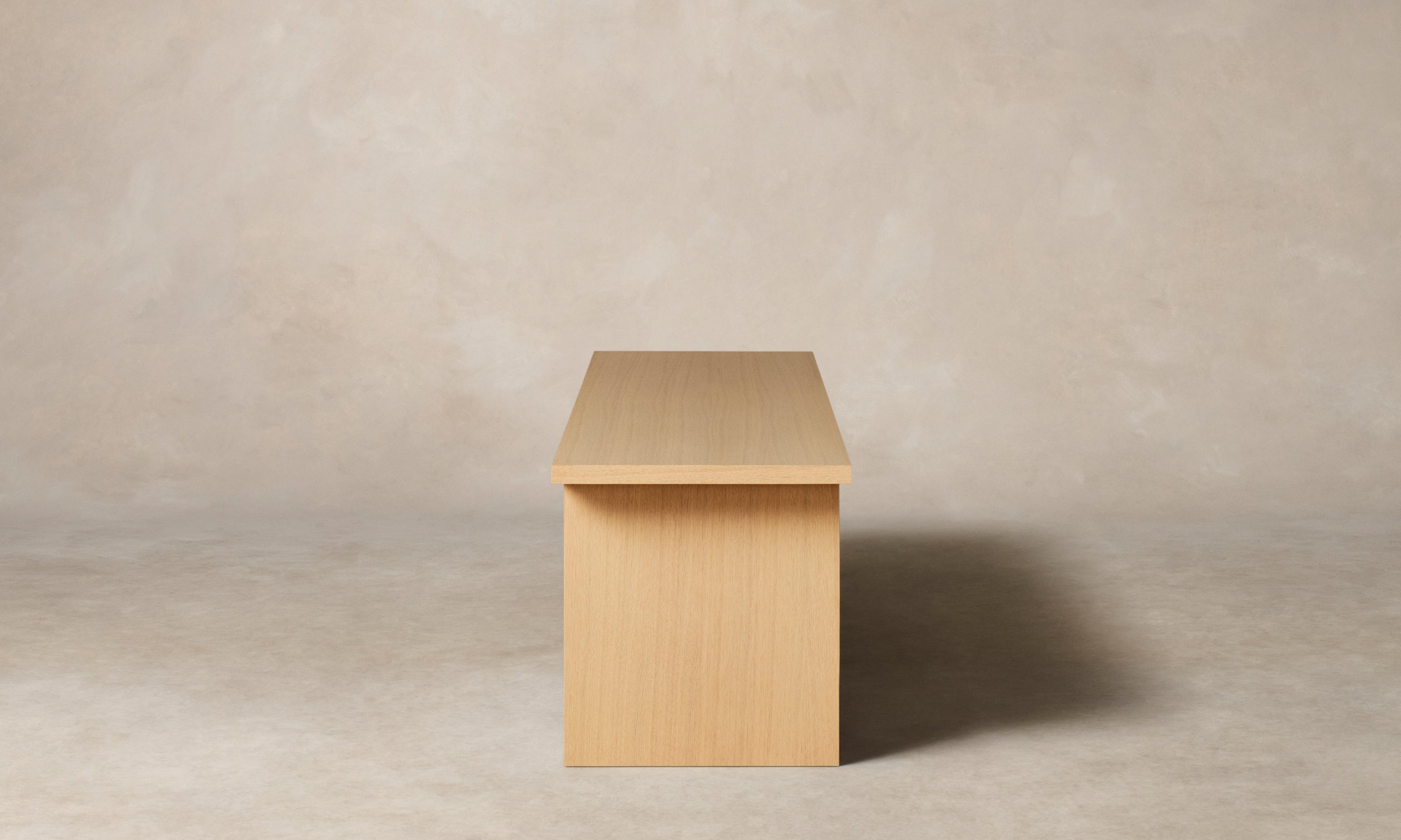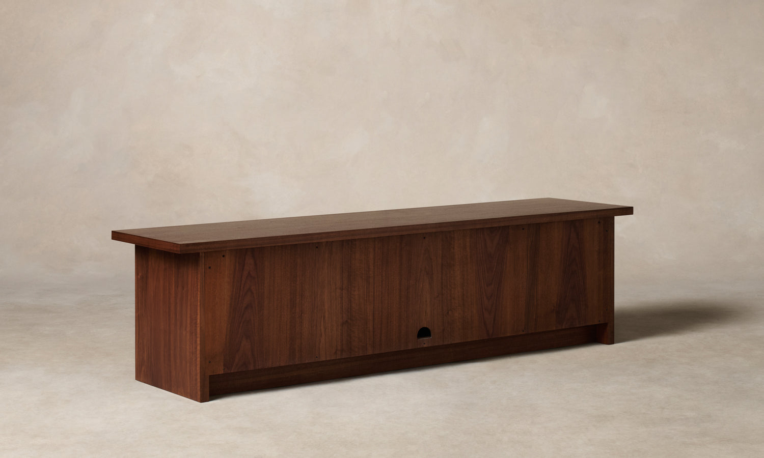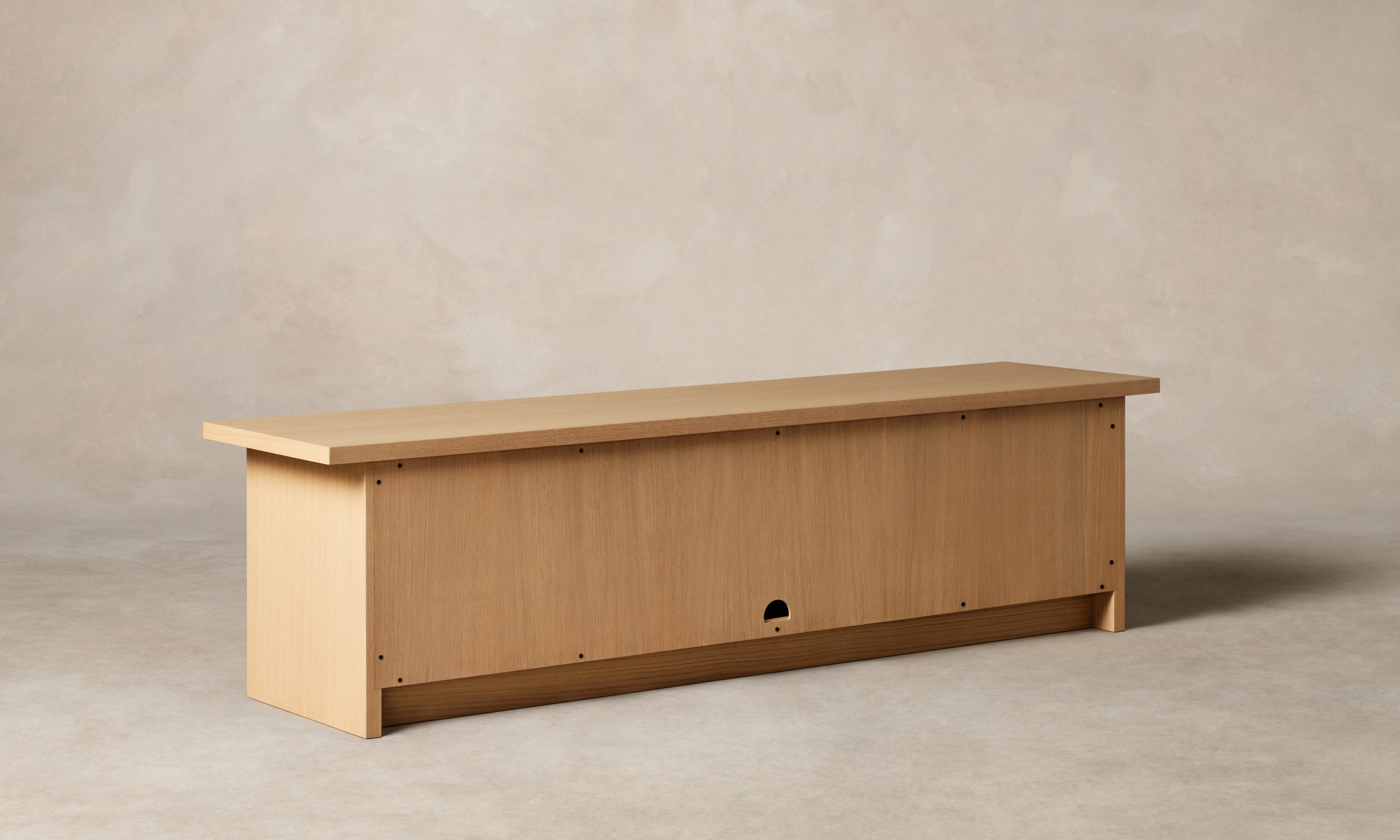 The Jeanne Console marries a mid-century form with a contemporary mixture of materials. Available in white oak or walnut, its angular façade is wrapped in smooth Alpine Leather and accented with enameled pulls. Handcrafted in New York.