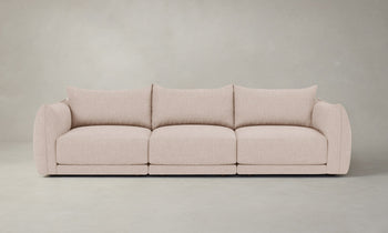 The Jones Sofa's low-lying, modular design recalls silhouettes from the 1970s. It has voluminous cushions and plush arms complete with flange seams for a tailored finish. Handcrafted in North Carolina.
